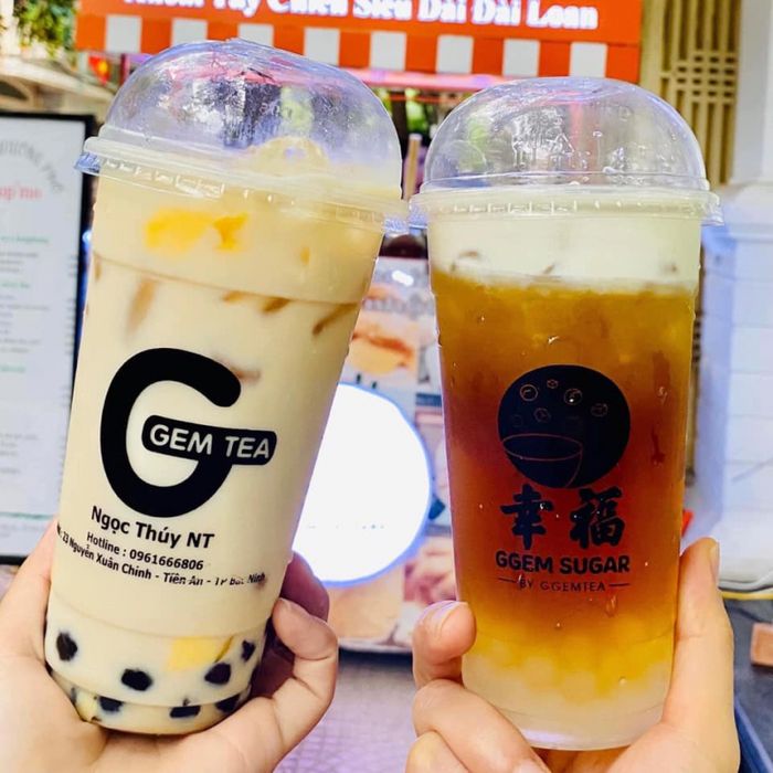 GGem Tea nhỏ nhắn nhưng ấn tượng ngay từ cái nhìn đầu — tông màu tươi sáng, vật dụng trang trí hài hoà khiến không gian gần gũi lạ thường. Thực đơn đa dạng từ trà gạo rang lúa mạch kem sữa, trà Ô Long kem sữa đến trà thiết quan âm, kèm theo cả matcha, yakult, trà trái cây và đồ ăn vặt. Quán luôn muốn kết hợp công thức mới nên thực đơn cập nhật liên tục, lần nào đến cũng có cái để thử.